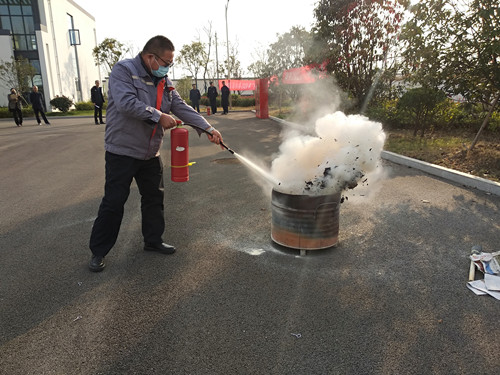 此次消防演练模拟中控室电气柜发生火灾,员工按照消防救援应急预案,开展断电、灭火、疏散、救援等模拟演练,在安全机构专家指导下现场操作干粉灭火器、水带等消防器材。